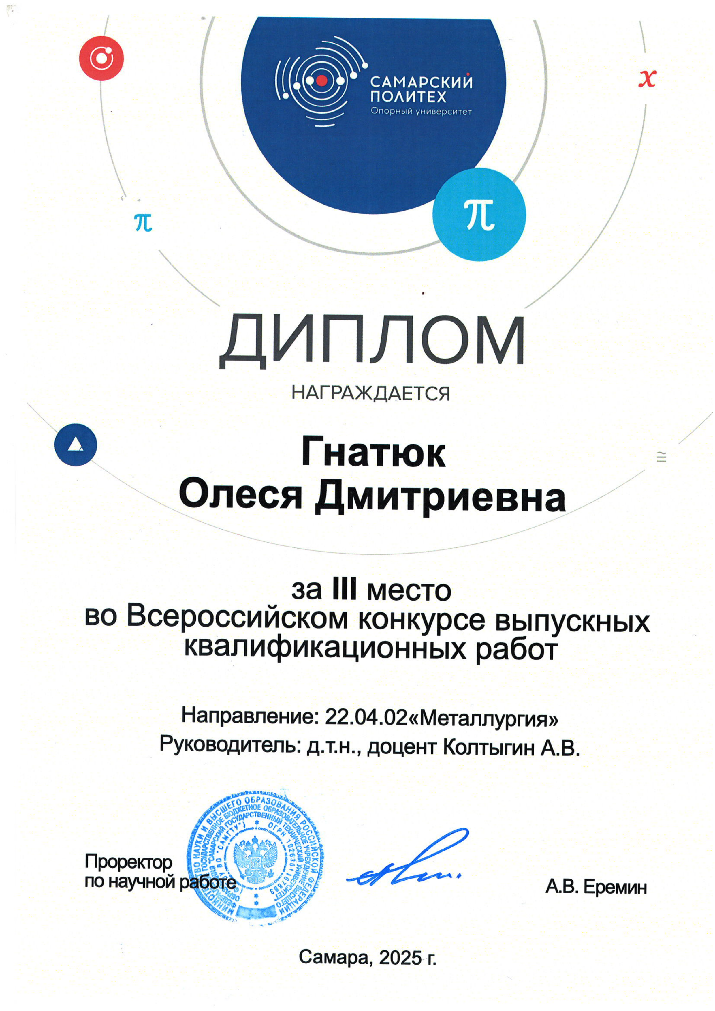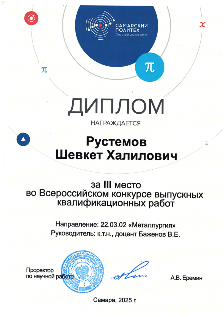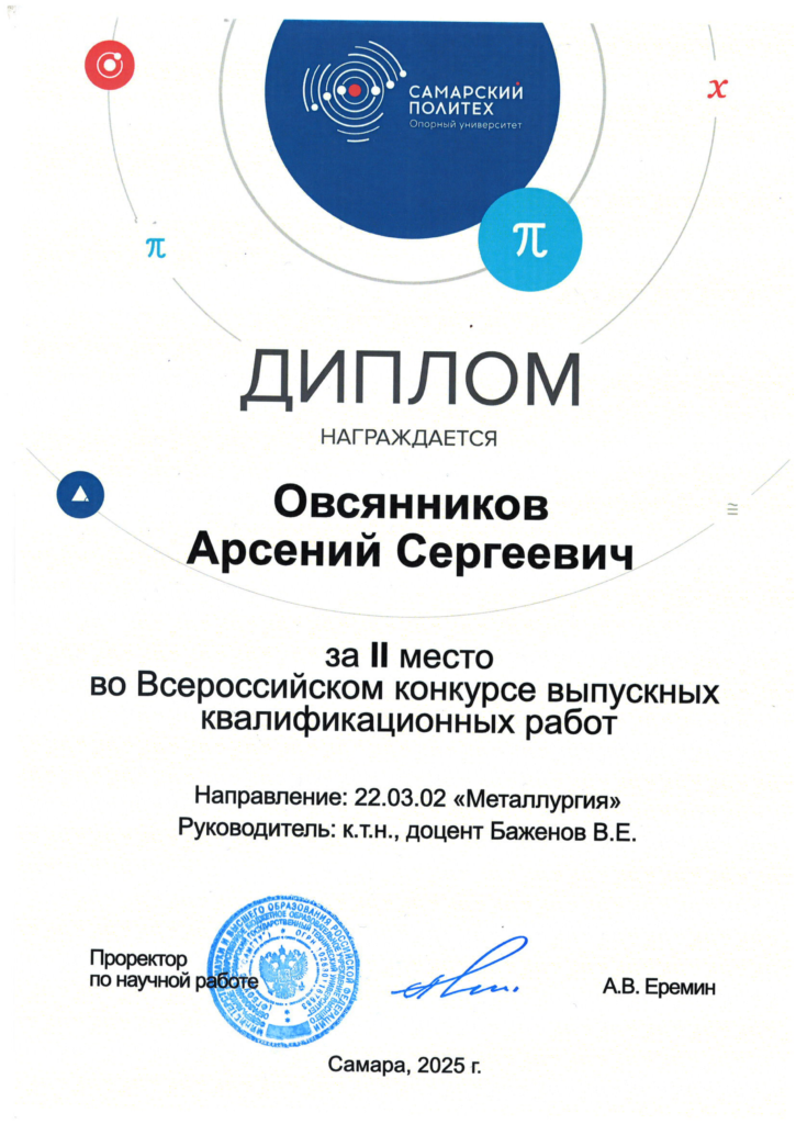 Его проект на тему «Разработка технологии литья по водорастворимым моделям, изготавливаемым аддитивным способом из поливинилового спирта» был высоко оценен экспертным жюри и получил поддержку в виде гранта в размере 500 000 рублей на дальнейшие исследования и разработки.